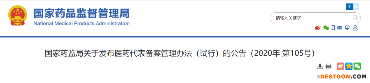第八條 藥品上市許可持有人應(yīng)當(dāng)在本公司網(wǎng)站上公示所聘用或者授權(quán)的醫(yī)藥代表信息。如本公司沒有網(wǎng)站的,應(yīng)當(dāng)在相關(guān)行業(yè)協(xié)會網(wǎng)站上公示。