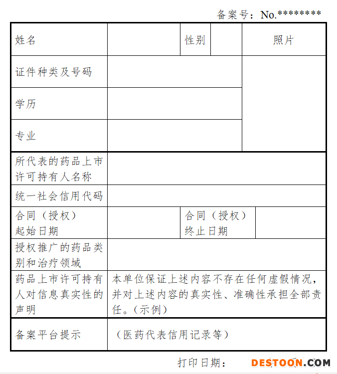 提交完備案信息后,備案平臺自動生成醫(yī)藥代表備案號。