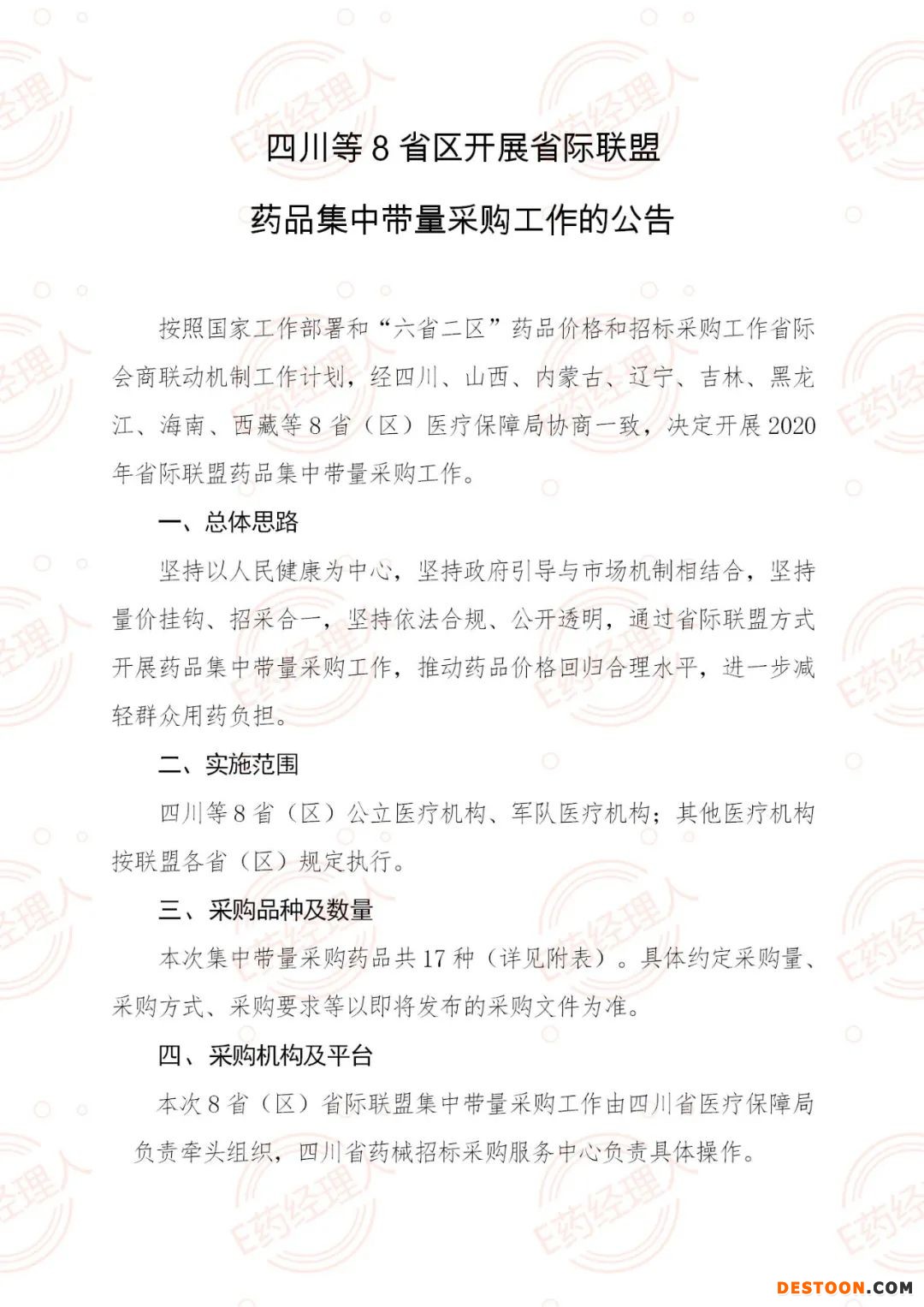 根據(jù)該公告,四川、山西、內(nèi)蒙古、遼寧、吉林、黑龍江、海南、西藏等8?。▍^(qū))醫(yī)療保障局協(xié)商一致,決定開展2020年省際聯(lián)盟藥品集中帶量采購(gòu)工作。