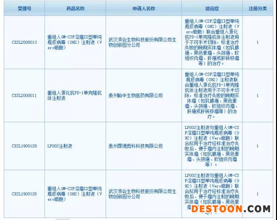 2019年10月浙江養(yǎng)生堂自主研發(fā)的注射用重組人PD-1抗體單純皰疹病毒獲批臨床,擬用于頭頸部癌癥、肺癌、結(jié)直腸癌、黑色素瘤、宮頸癌、膀胱癌、胰腺癌、肝癌等可進(jìn)行性瘤內(nèi)注射、靜脈滴注或胸/腹腔局部給藥的惡性腫瘤。目前處于臨床Ⅰ期。