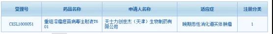 重組溶瘤痘苗病毒注射液T601是由天士力旗下創(chuàng)世杰公司在中國(guó)開發(fā)的具有完全自主知識(shí)產(chǎn)權(quán)的治療用生物制品1類新藥,是一種全新開發(fā)設(shè)計(jì)的溶瘤病毒產(chǎn)品,適應(yīng)癥為晚期惡性消化道實(shí)體腫瘤。