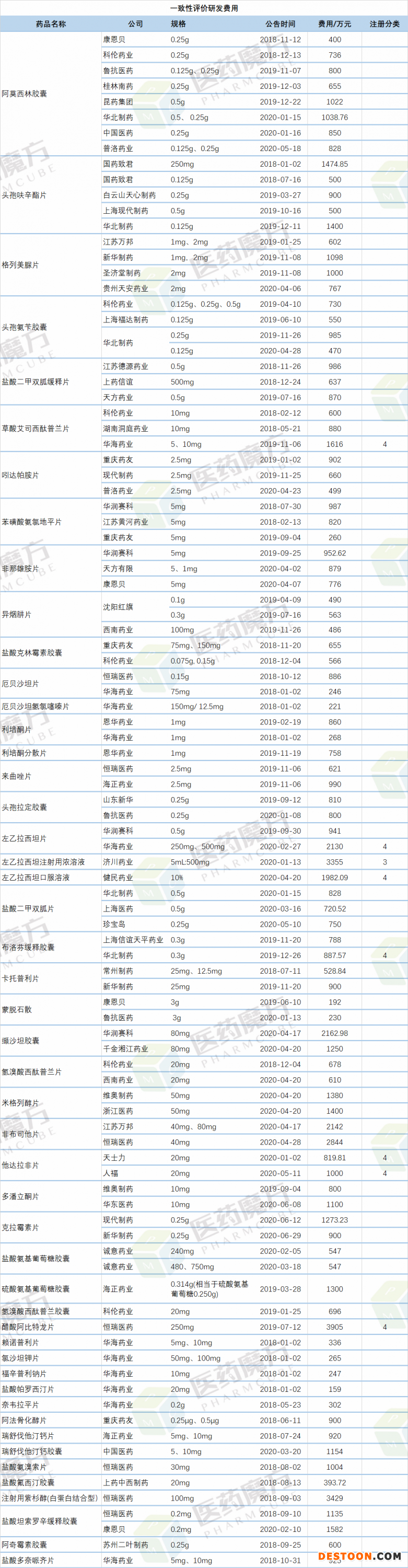 183個(gè)藥品一致性評(píng)價(jià)研發(fā)費(fèi)用匯總:67個(gè)高于1000萬(wàn)