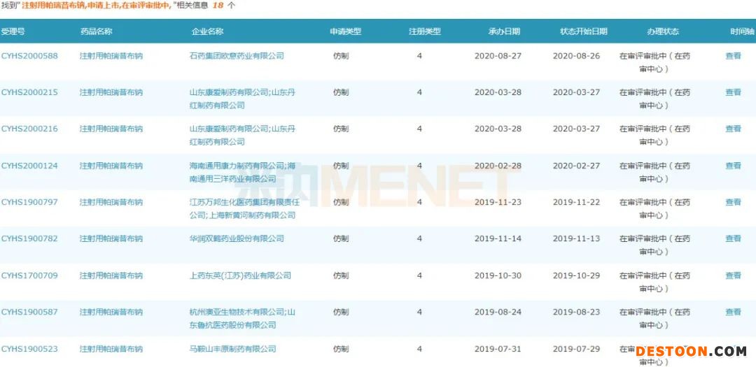10月10日訊 近日,CDE官網(wǎng)顯示,海南皇隆制藥的注射用帕瑞昔布鈉仿制4類上市申請獲得受理。米內(nèi)網(wǎng)數(shù)據(jù)顯示,2019年中國公立醫(yī)療機構終端帕瑞昔布注射劑銷售額超過15億元,其中,輝瑞市場份額占比最大,達60.59%。截至目前,該產(chǎn)品國內(nèi)生產(chǎn)企業(yè)超過20家,包括科倫藥業(yè)、齊魯制藥、南京正大天晴制藥等。