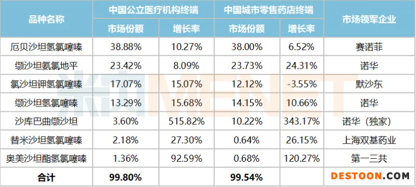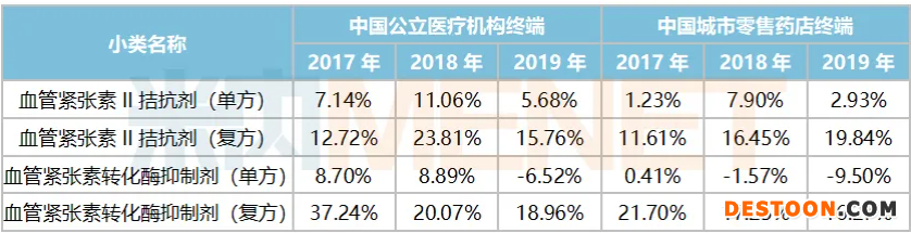 表1:作用于腎素-血管緊張素系統的藥物各小類增速情況