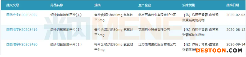 圖2:目前已過評的纈沙坦氫氯噻嗪相關產品情況