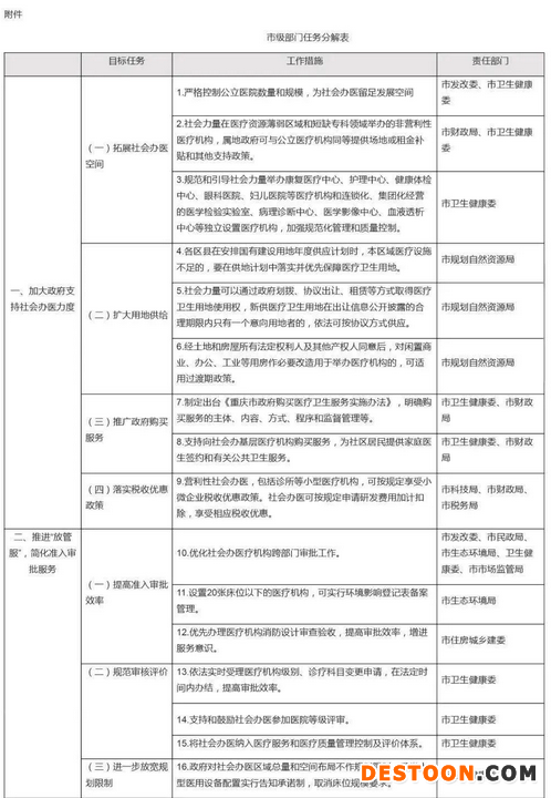 《重慶市促進(jìn)社會辦醫(yī)持續(xù)健康規(guī)范發(fā)展的實(shí)施意見》市級部門任務(wù)分解表