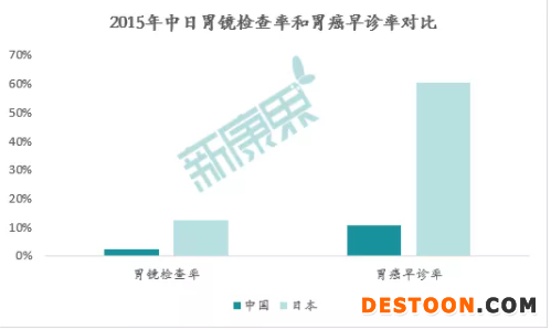 早診早治是提高癌癥生存率的重要手段,然而目前我國內(nèi)國民癌癥早期檢查意識差,內(nèi)窺鏡檢查使用較少,導(dǎo)致癌癥早期診斷率偏低,病發(fā)率及死亡率遠(yuǎn)高于發(fā)達(dá)國家。以胃癌為例,2015年,日本有約12.5%的人參與了胃鏡檢查,而我國只有不到3%;日本胃癌早診率高達(dá)60%,而我國僅有10%左右。