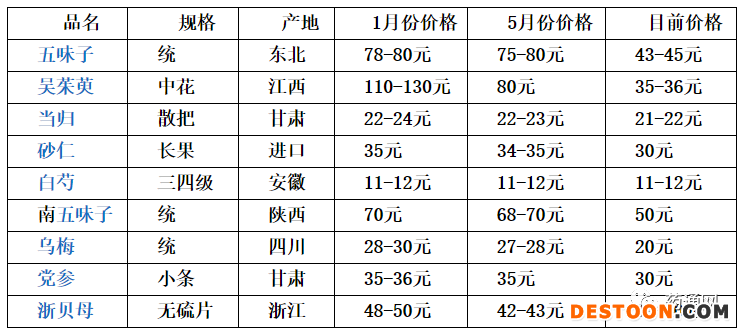 據(jù)藥通網(wǎng)最新數(shù)據(jù)顯示,今年以來,有不少中藥材的價格下降是比較明顯的。有的是年初就大幅降價,一直沒漲回來,例如當(dāng)歸、白芍、黨參等;有的是價格在持續(xù)下滑的,例如五味子、吳茱萸、浙貝母等。