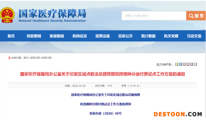 10月20日訊 10月19日,國家醫(yī)保局發(fā)布《關于印發(fā)區(qū)域點數法總額預算和按病種分值付費試點工作方案的通知》。根據文件要求,試點將以地級市統(tǒng)籌區(qū)為單位開展。用1-2年的時間,將統(tǒng)籌地區(qū)醫(yī)??傤~預算與點數法相結合,實現住院以按病種分值付費為主的多元復合支付方式。
