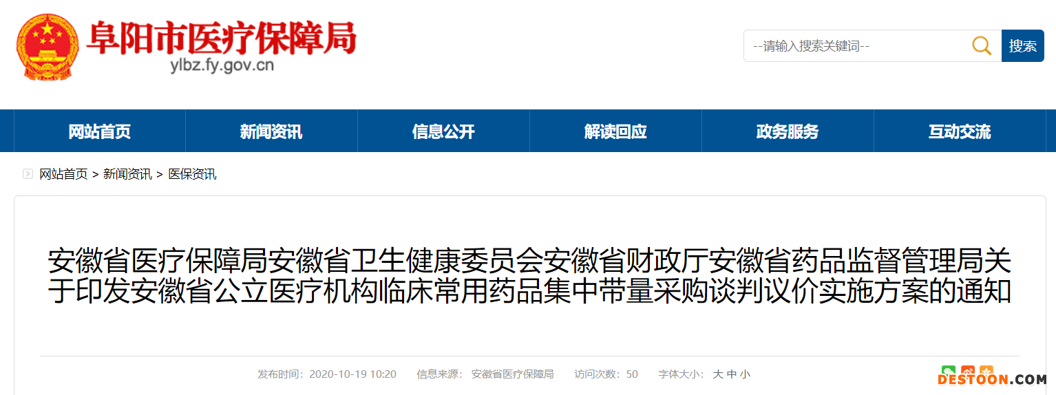 10月19日,根據(jù)阜陽市醫(yī)保局消息,安徽省醫(yī)保局等相關(guān)部門印發(fā)《安徽省公立醫(yī)療機(jī)構(gòu)臨床常用藥品集中帶量采購談判議價(jià)實(shí)施方案》(下稱《實(shí)施方案》)。