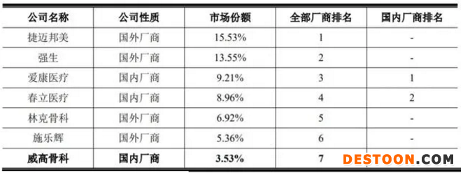2019年中國骨科植入市場(chǎng)生產(chǎn)企業(yè)市場(chǎng)份額排名