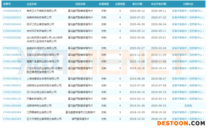 米內(nèi)網(wǎng)數(shù)據(jù)顯示,目前國內(nèi)有16家藥企以仿制3類或仿制4類提交富馬酸丙酚替諾福韋片上市申請。成都倍特藥業(yè)該產(chǎn)品率先于9月23日進入行政審批階段,10月19日順利成為國內(nèi)首仿。