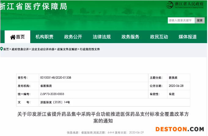 公示指出,根據(jù)《浙江省提升藥品集中采購平臺功能推進醫(yī)保藥品支付標準全覆蓋改革方案》精神,按照上級統(tǒng)一部署,現(xiàn)將企業(yè)申請暫停在線交易產(chǎn)品信息予以公示,公示時間:2020年10月20日至2020年10月26日。