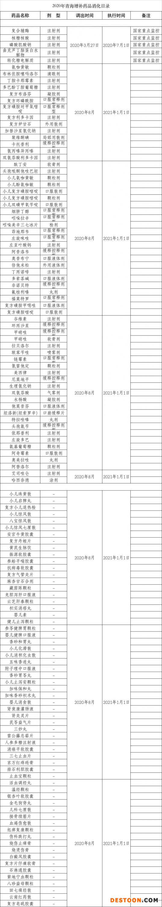 除此外,2020年,青海省將調(diào)出國家重點(diǎn)監(jiān)控藥品和上年度青海省省藥品采購平臺(tái)未招采使用的藥品,共129個(gè)品種,從2021年1月1日起停止醫(yī)保、工傷保險(xiǎn)報(bào)付。