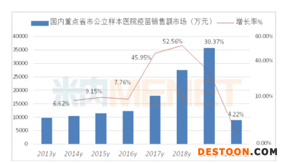 國內(nèi)疫苗市場跌宕起伏,尤其是2018年7月,長春長生的疫苗事件,導致了民眾對疫苗的認同下滑。而近兩年輝瑞的13價肺炎球菌多糖結(jié)合疫苗沛兒上市,默沙東的四價人乳頭瘤病毒疫苗佳達修、葛蘭素史克的雙價人乳頭瘤病毒吸附疫苗希瑞適的基礎(chǔ)上,批準了默沙東的九價人乳頭瘤病毒疫苗佳達修9,國產(chǎn)23價肺炎球菌多糖疫苗的擴容,使國內(nèi)疫苗市場回暖。