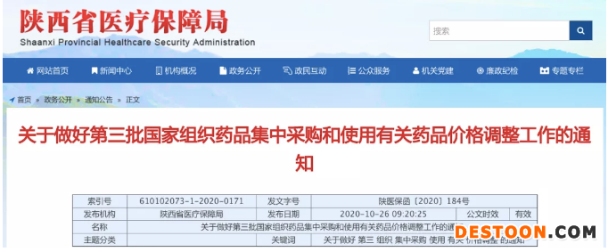 通知明確,從2020年11月25日起,陜西全省執(zhí)行第三批國(guó)家集采中選結(jié)果。
