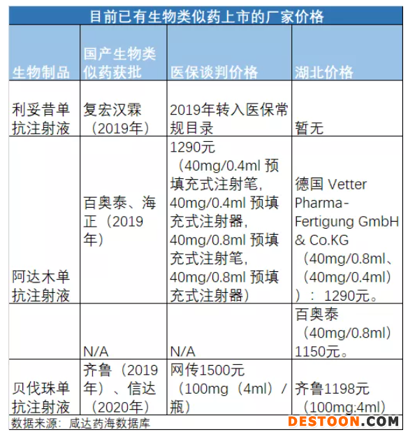百奧泰的阿達(dá)木單抗注射液曾在天津報(bào)價(jià)1160元,在《湖北省藥品采購準(zhǔn)入結(jié)果(第六批)》沒有成功掛網(wǎng),《湖北省藥品采購準(zhǔn)入公示表(第七批)》的價(jià)格為1150元,有望成功掛網(wǎng)。