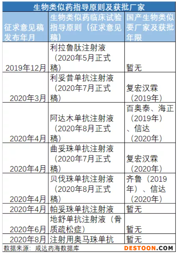 自2015年食品藥品監(jiān)管總局發(fā)布《生物類似藥研發(fā)與評(píng)價(jià)技術(shù)指導(dǎo)原則(試行)》以來,2019年起終于發(fā)表了一系列具體產(chǎn)品的生物類似藥臨床試驗(yàn)設(shè)計(jì)指導(dǎo)原則。生物類似藥臨床試驗(yàn)設(shè)計(jì)指導(dǎo)原則主要針對(duì)的是生物類似藥的上市標(biāo)準(zhǔn)。指導(dǎo)原則發(fā)布了,生物類似藥獲批的標(biāo)準(zhǔn)才有,生物類似藥才有可能獲批。