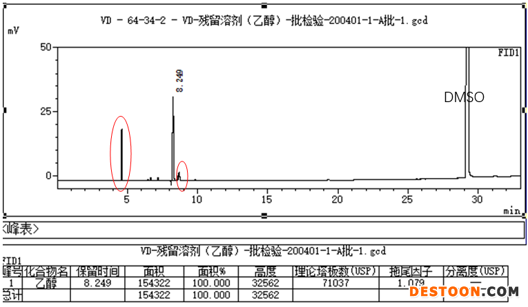 圖4 DMSO酸性條件下80℃頂空平衡25min進(jìn)樣的GC色譜圖