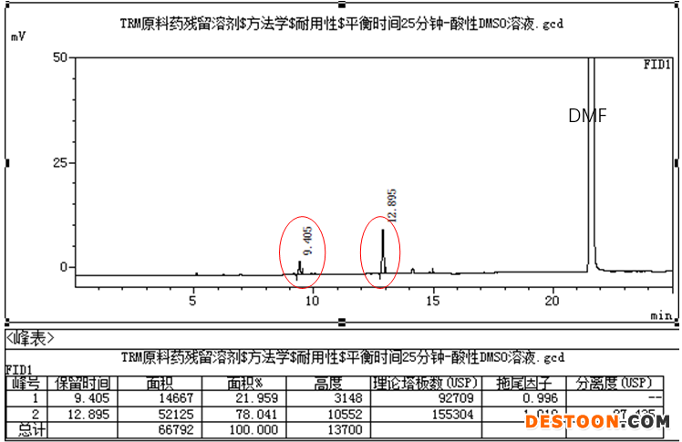 2、更換DMF作溶劑可改善此現(xiàn)象;但是有的鹽酸類原料藥在DMF中的溶解性不滿足測定要求時,可采用一定比例的DMF:水的混合溶液做溶劑。