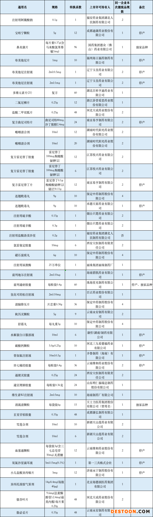 ?。ㄒ唬┆毤移贩N。本批次共3個獨家品種申請撤廢,具體為:國藥集團德眾(佛山)藥業(yè)有限公司鼻炎康片 (0.37g*96)、珠海星光制藥有限公司前列通瘀膠囊 (0.4g*60)、天士力醫(yī)藥集團股份有限公司消渴清顆粒 (6g*15)。以上3個品種撤廢后,醫(yī)療機構(gòu)可選擇同功能主治替代藥品采購。