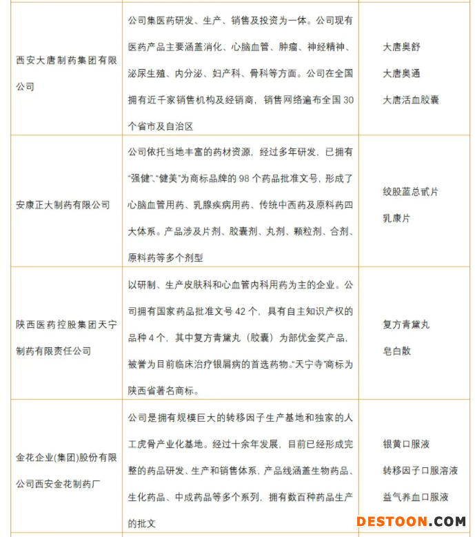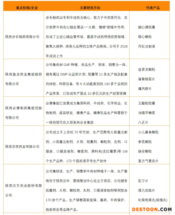 陜西省生產(chǎn)了許多聞明全國的地域性特色品種,如腦心通膠囊、金天格膠囊、盤龍七片、金嗓系列品種、復(fù)方皂礬丸、平消片(膠囊)、絞股藍總苷片等,單品種產(chǎn)值均超過上千萬甚至更高。步長公司的“丹紅注射液”單品種年銷售額可達50億人民幣,腦心通膠囊在中藥大品種(全品類)科技競爭力百強榜中位列第四。