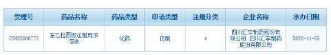 11月6日訊 11月5日,CDE官網(wǎng)顯示,四川匯宇制藥以仿制4類提交的左乙拉西坦注射用濃溶液上市申請獲得CDE承辦受理。2020年至今,四川匯宇制藥已有5個(gè)品種(均為注射劑)以新分類報(bào)產(chǎn),其中普樂沙福注射液暫無首仿,四川匯宇制藥獨(dú)家以新分類報(bào)產(chǎn)。