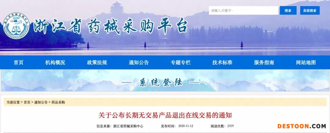 11月12日,浙江省藥械采購(gòu)平臺(tái)發(fā)布《關(guān)于公布長(zhǎng)期無(wú)交易產(chǎn)品退出在線交易的通知》。