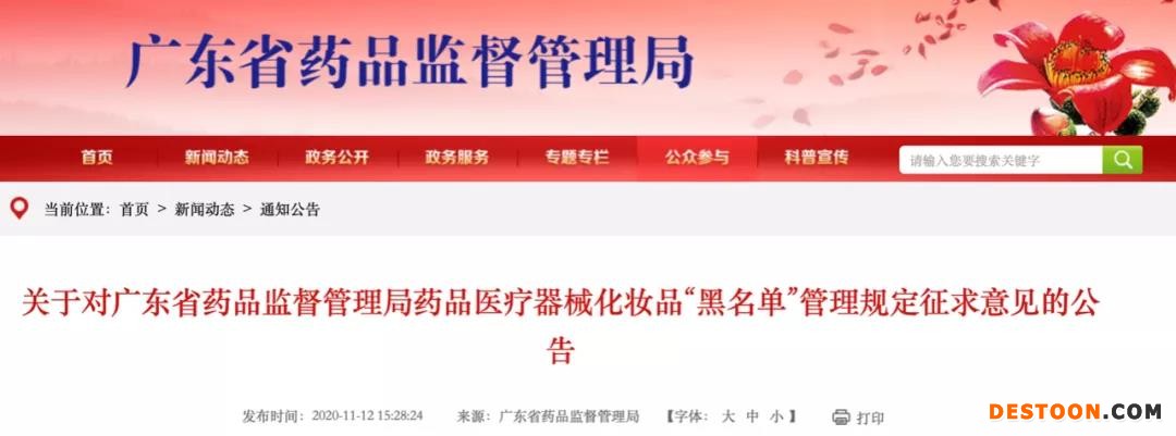 11月12日,廣東省藥監(jiān)局發(fā)布《關(guān)于對廣東省藥品監(jiān)督管理局藥品醫(yī)療器械化妝品“黑名單”管理規(guī)定征求意見的公告》,將加強藥品、醫(yī)療器械和化妝品安全監(jiān)管,加大對違法違規(guī)行為的懲戒力度。