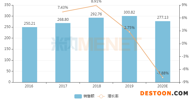 米內(nèi)網(wǎng)數(shù)據(jù)顯示,近幾年來中國城市零售藥店終端呼吸系統(tǒng)中成藥銷售規(guī)模逐年上漲,2019年首次突破300億元。2020年受新冠疫情影響,預(yù)測將實(shí)現(xiàn)銷售收入277.13億元,同比下滑7.88%,占中成藥總體市場比重超過20%,銷售規(guī)模在中成藥13個(gè)大類中排名第一。