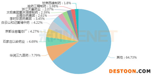 從呼吸系統(tǒng)中成藥TOP10廠家市場格局來看,華潤三九醫(yī)藥霸主地位難撼,市場份額較去年有所提升;石家莊以嶺藥業(yè)憑借獨(dú)家品種放量,市場份額明顯上升,躋身TOP3廠家;李時(shí)珍醫(yī)藥集團(tuán)、白云山和記黃埔中藥市場份額也有較大提升。