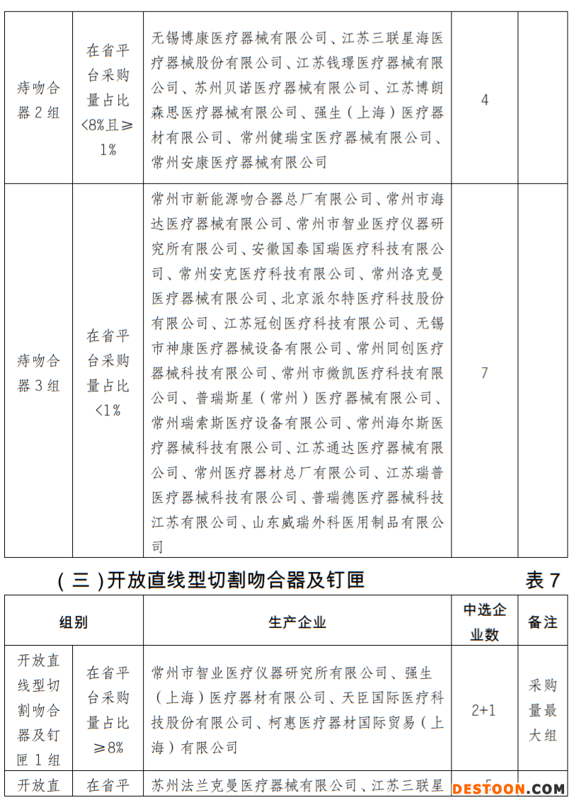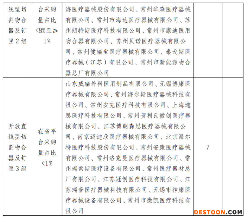 吻合器涉及強(qiáng)生、柯惠、上海逸思、常州市康迪、威海威高富森、重慶邁科唯、重慶邁科唯等械企;