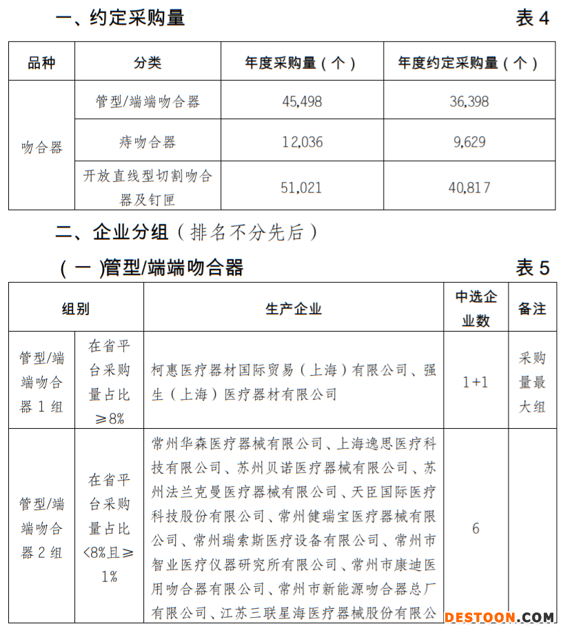11月19日,江蘇省醫(yī)保局發(fā)布《江蘇省第四輪公立醫(yī)療機(jī)構(gòu)醫(yī)用耗材聯(lián)盟帶量采購公告(二)》顯示,將對干式膠片(激光、熱敏)、吻合器(管型/端端吻合器、痔吻合器、開放直線型切割吻合器及釘匣)進(jìn)行帶量采購。