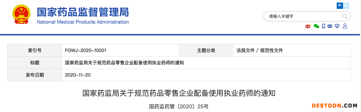 從國(guó)家藥監(jiān)局的通知明確以2025年為期看,最晚到2025年,全國(guó)范圍內(nèi)的零售藥店有望實(shí)現(xiàn)足額配備執(zhí)業(yè)藥師。