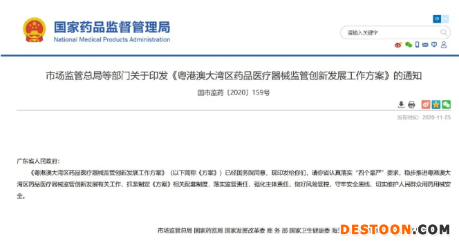 《粵港澳大灣區(qū)藥品醫(yī)療器械監(jiān)管創(chuàng)新發(fā)展工作方案》