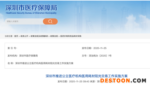 深圳市醫(yī)藥局指出,全市各級公立醫(yī)療機構(gòu)應(yīng)根據(jù)臨床需要、醫(yī)用耗材質(zhì)量、價格以及服務(wù)等因素,主動停止其他采購交易方式,選擇在深圳陽光平臺或廣東省醫(yī)用耗材集中采購平臺上陽光采購、公開交易。深圳陽光平臺實行分類采購。