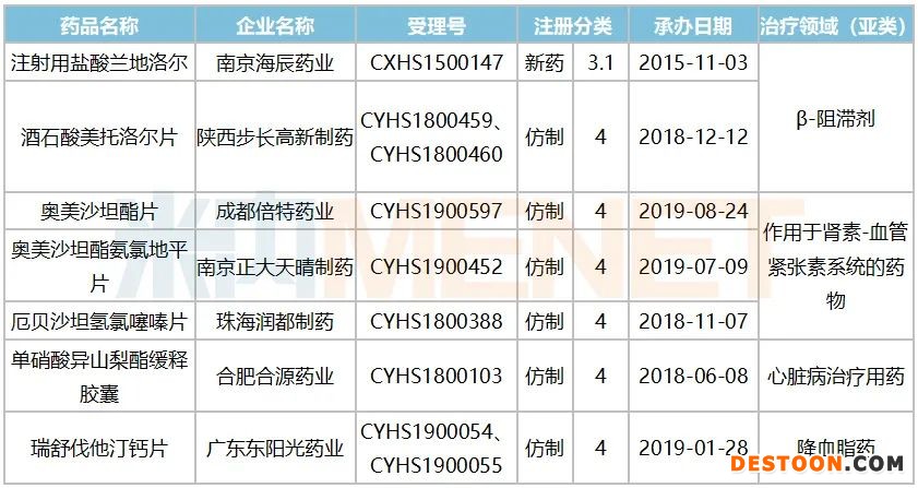 表1:目前在審批的心血管系統(tǒng)藥物上市申請情況