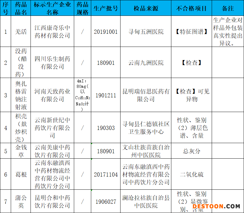 11月30日,云南省藥監(jiān)局2020年第2期不合格藥品質(zhì)量公告。具體如下: