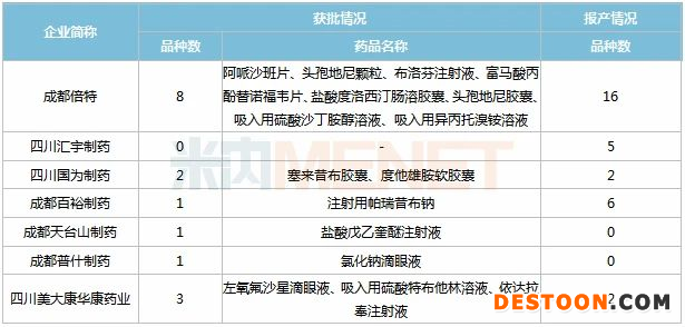 今年以來,部分四川非上市藥企表現(xiàn)也很搶眼,成都倍特、四川匯宇制藥、四川美大康華康藥業(yè)等7家公司拿下16個(gè)新品,31個(gè)品種申報(bào)上市。