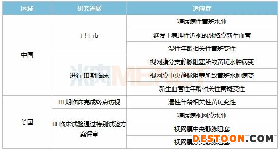 表3:康柏西普眼用注射液部分適應(yīng)癥推進(jìn)情況