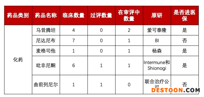 值得注意的是,除了安立生坦外,原研+過評最多的為吡非尼酮,用以治療特發(fā)性肺纖維化。