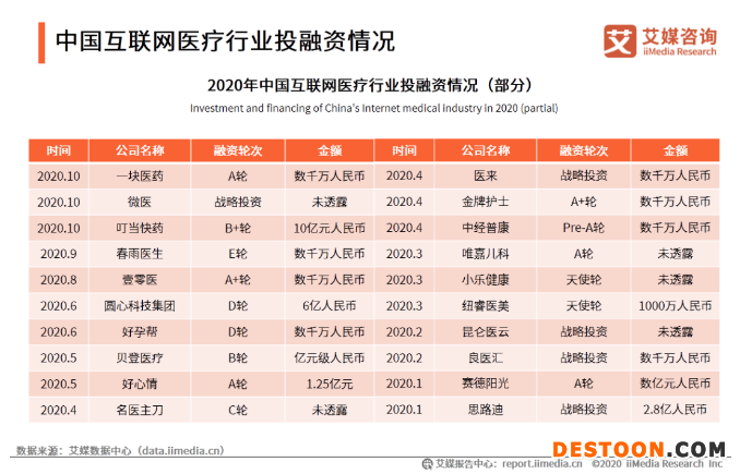 疫情背景下,互聯(lián)網(wǎng)醫(yī)療作為重要發(fā)展方向,更受資本青睞。今年以來,尤其是在疫情期間,互聯(lián)網(wǎng)巨頭加大投入在互聯(lián)網(wǎng)醫(yī)療方面的布局。2020年1月至10月,醫(yī)療健康領(lǐng)域融資金額超過500億元,互聯(lián)網(wǎng)醫(yī)療行業(yè)競爭進(jìn)入白熱化。