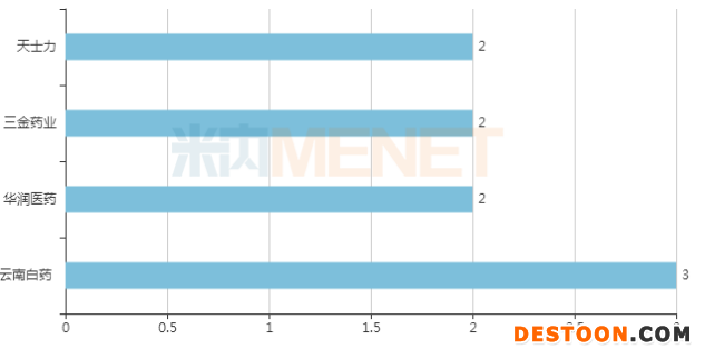 29個(gè)銷售額超過3億元的獨(dú)家中成藥涉及24家藥企(以集團(tuán)計(jì)),其中云南白藥、華潤醫(yī)藥、三金藥業(yè)、天士力4家企業(yè)的品種數(shù)達(dá)2個(gè)及以上。