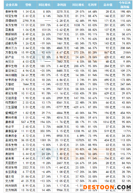 今年以來A股上市的醫(yī)藥企業(yè)前三季度業(yè)績情況