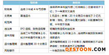 新舊退市標(biāo)準(zhǔn)對(duì)比