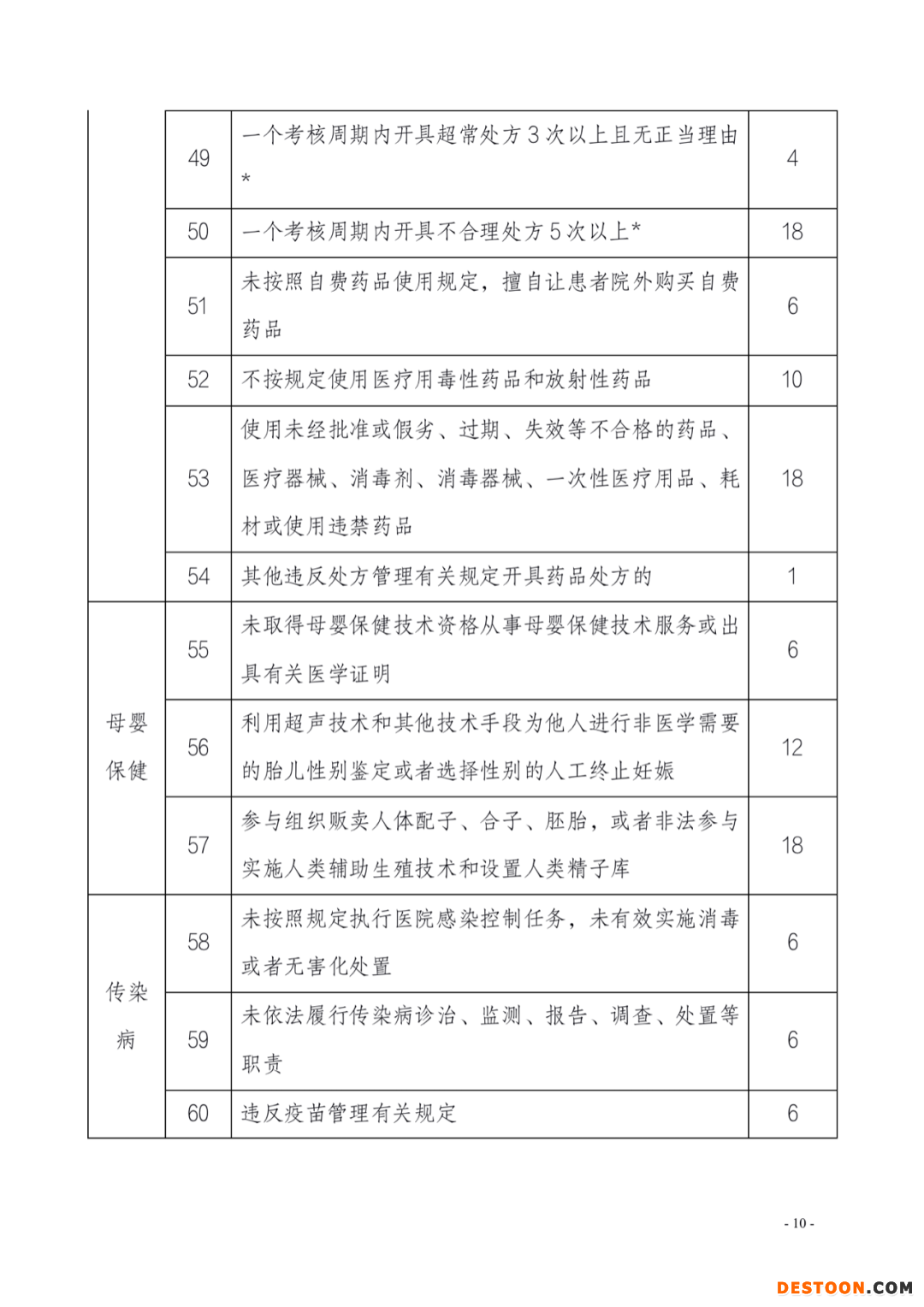 值得注意的是,醫(yī)生出現(xiàn)不同的行為,對應(yīng)不同的分值,記分在1-18分不等,其中18分為最重的記分,同時被記18分的行為還有:一個考核周期內(nèi)開具不合理處方5次以上;參與買賣人體器官或者從事與買賣人體器官有關(guān)活動等。