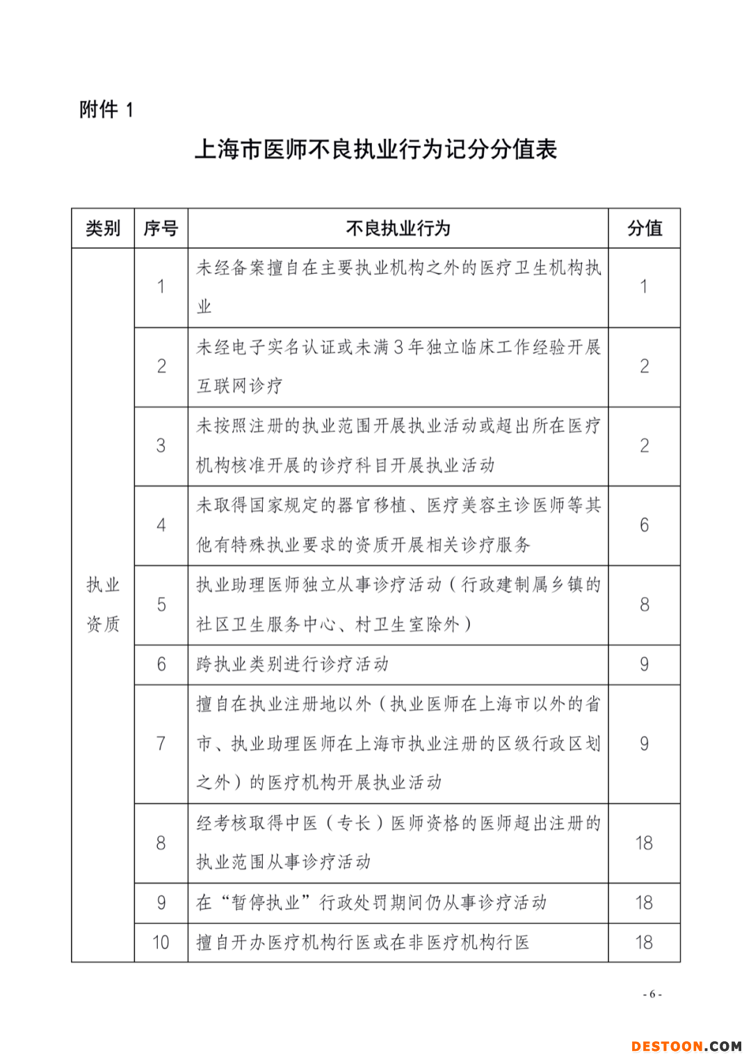醫(yī)師不良執(zhí)業(yè)行為記分分值包括1分、2分、4分、6分、8分、9分、10分、12分、18分,具體情形和對(duì)應(yīng)分值見(jiàn)《上海市醫(yī)師不良執(zhí)業(yè)行為記分分值表》。