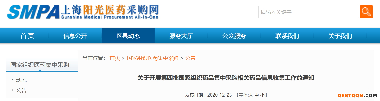 12月28日訊 12月25日,上海陽光醫(yī)藥采購網(wǎng)發(fā)布《關(guān)于開展第四批國家組織藥品集中采購相關(guān)藥品信息收集工作的通知》,第四批國家集采信息申報工作正式開啟。