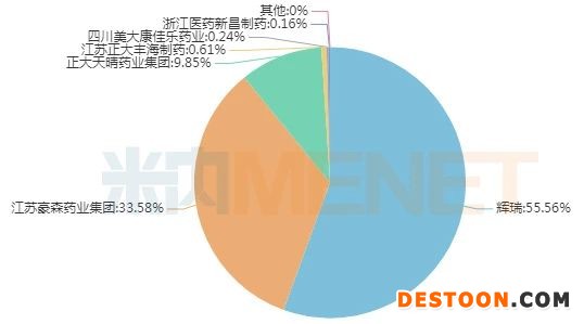 米內(nèi)網(wǎng)數(shù)據(jù)顯示,近年中國(guó)城市公立醫(yī)院、縣級(jí)公立醫(yī)院、城市社區(qū)中心以及鄉(xiāng)鎮(zhèn)衛(wèi)生院(簡(jiǎn)稱中國(guó)公立醫(yī)療機(jī)構(gòu))終端利奈唑胺注射劑均保持20%的增速,2019年銷售額超過(guò)18億元;今年上半年增速有所下滑。利奈唑胺葡萄糖注射液生產(chǎn)企業(yè)有輝瑞、江蘇豪森藥業(yè)、正大天晴藥業(yè)、江蘇正大豐海制藥等10家。其中,輝瑞的市場(chǎng)份額最大,占比超過(guò)50%;其次是江蘇豪森藥業(yè)33.58%。值得注意的是,近年隨著國(guó)內(nèi)藥企發(fā)力,輝瑞的市場(chǎng)份額逐步下滑,從2016年超過(guò)90%下滑至今年上半年的55.56%。