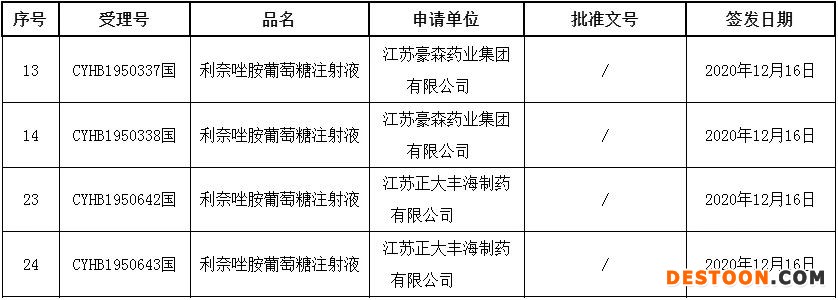 截至目前,利奈唑胺葡萄糖注射液已有江蘇豪森藥業(yè)和江蘇正大豐海制藥兩家企業(yè)過(guò)評(píng),而在此之前,該產(chǎn)品并沒(méi)有企業(yè)過(guò)評(píng)。此外,浙江醫(yī)藥新昌制藥廠的一致性評(píng)價(jià)補(bǔ)充申請(qǐng)?jiān)趯徳u(píng)審批中(在藥審中心);廣州綠十字制藥、石家莊四藥、揚(yáng)子江藥業(yè)集團(tuán)上海海尼藥業(yè)等4家企業(yè)以仿制4類提交上市申請(qǐng)也在審評(píng)審批中(在藥審中心),獲批后將視同過(guò)評(píng)。